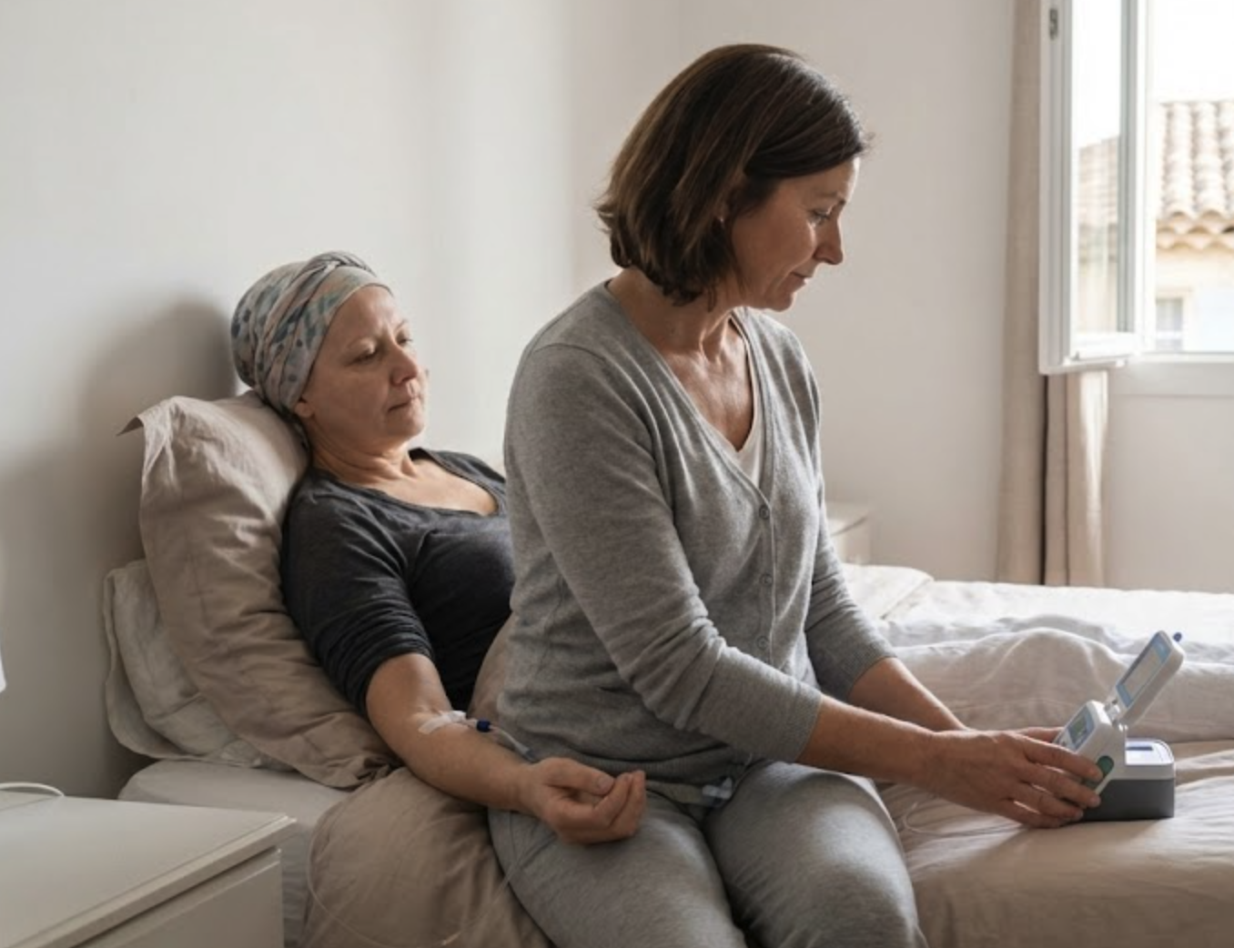 Si vous revenez de l’hôpital (IPC, Hôpital d’Aix…) avec un diffuseur ou une pompe, nous intervenons à domicile pour le débranchement à la fin de la perfusion. Nous surveillons également les effets secondaires éventuels (nausées, fièvre, fatigue) et nous assurons le lien avec votre oncologue.